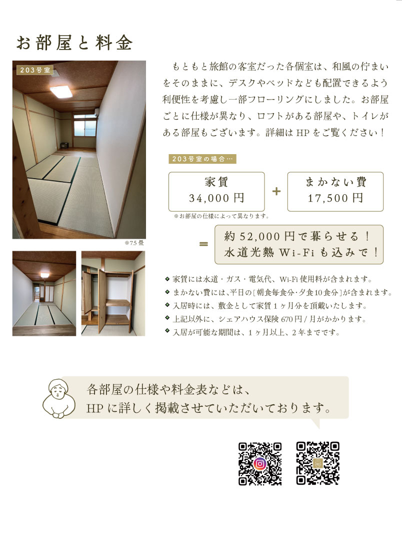 2026年4月より、管理人や運用形態、家賃、まかない提供の回数などに変更が生じる可能性がございます。